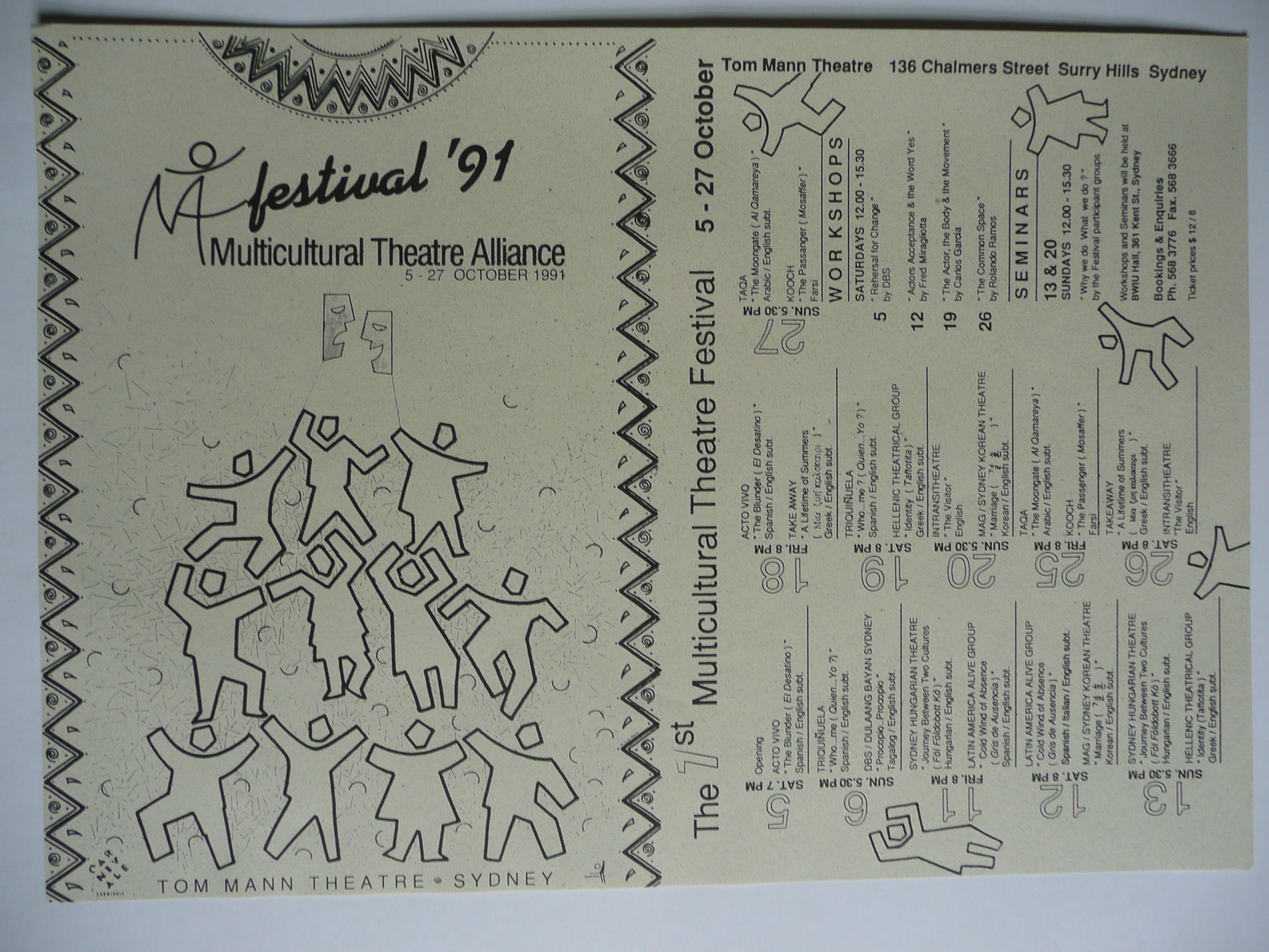 Festival ‘91 “… (was the ) first major activity as the Multicultural Theatre Alliance which we formed in Sydney in 1990 when over twenty theatre companies came together to share experiences and to find common ground.”
