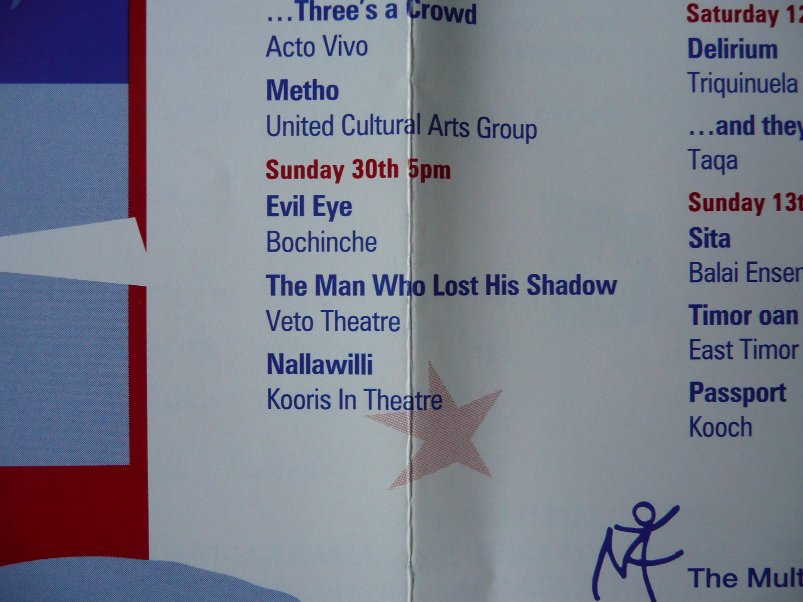 ‘The Man Who Lost His Shadow’, Veto Theatre – part of the 1992 Multicultural Theatre Festival (poster / programme)
